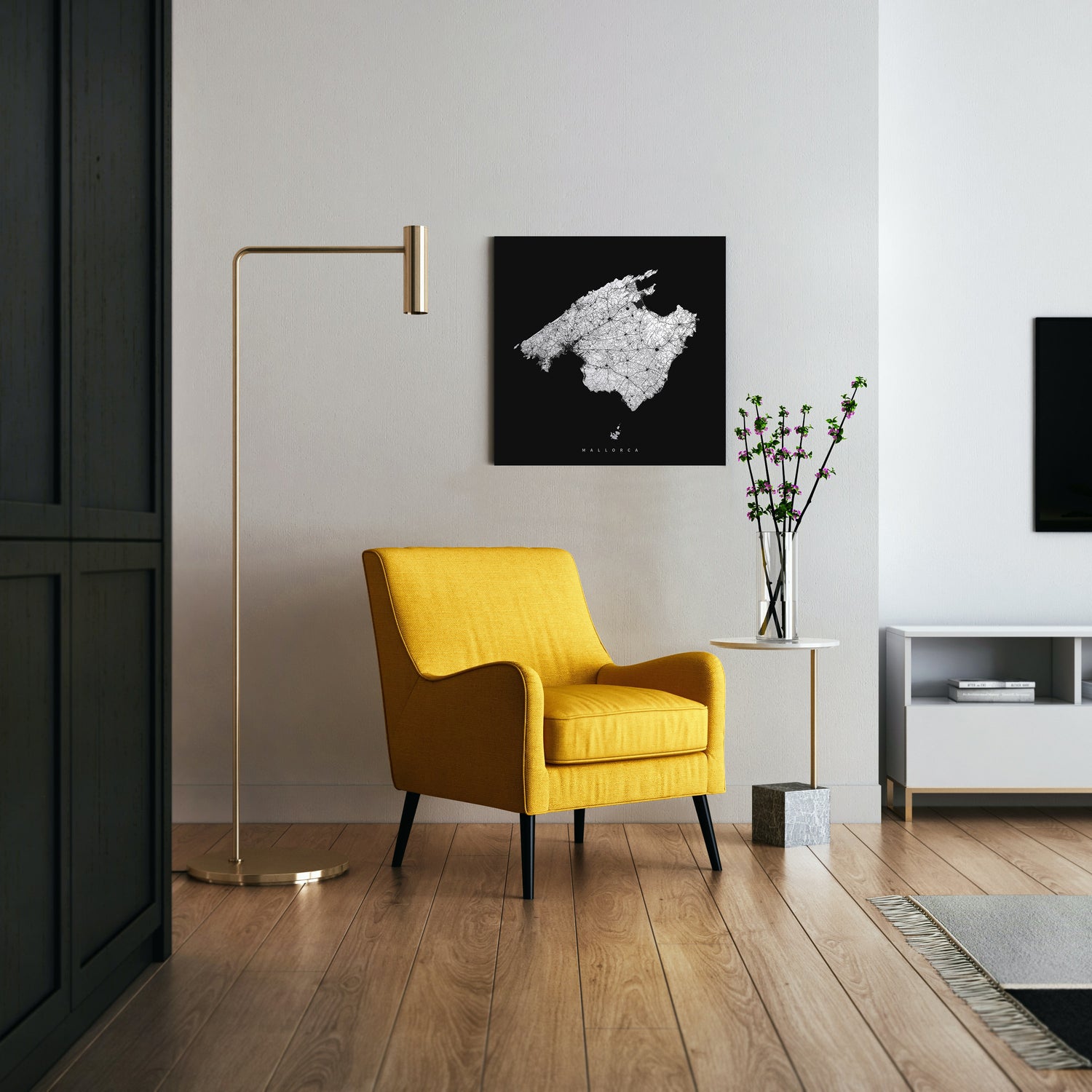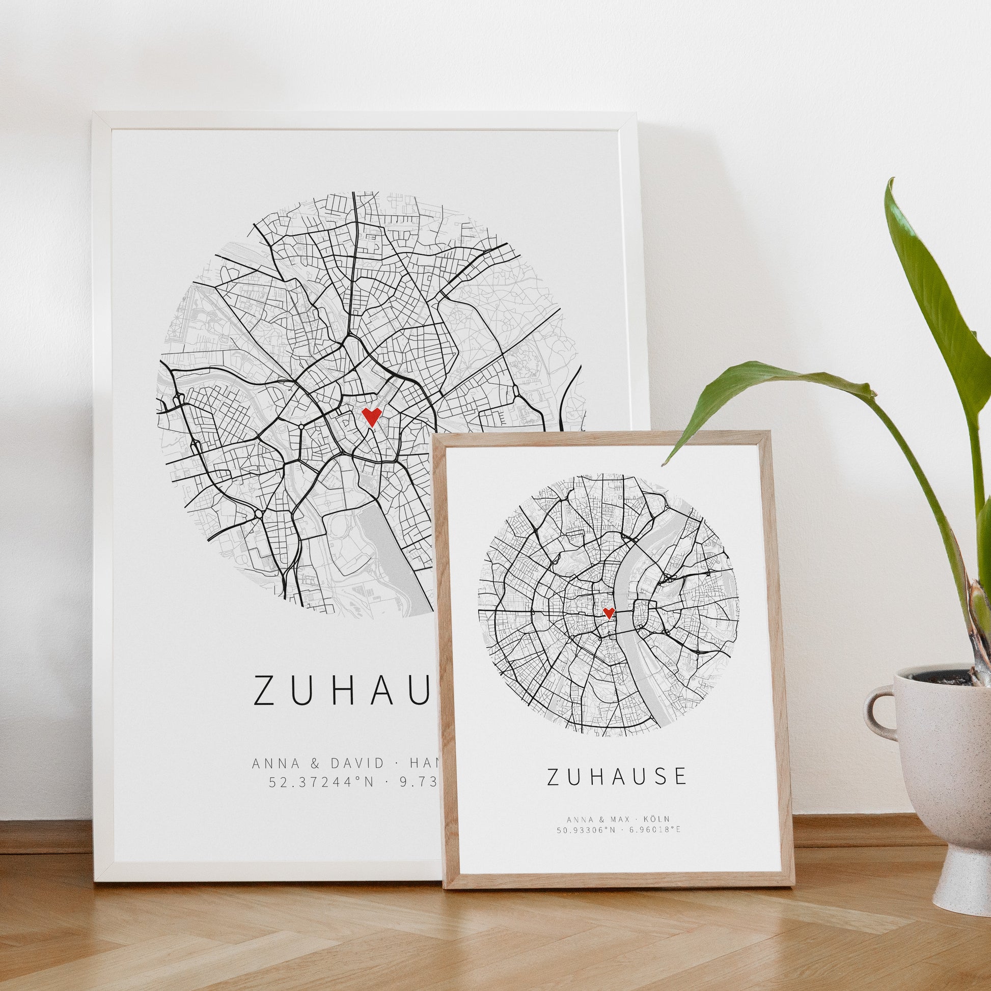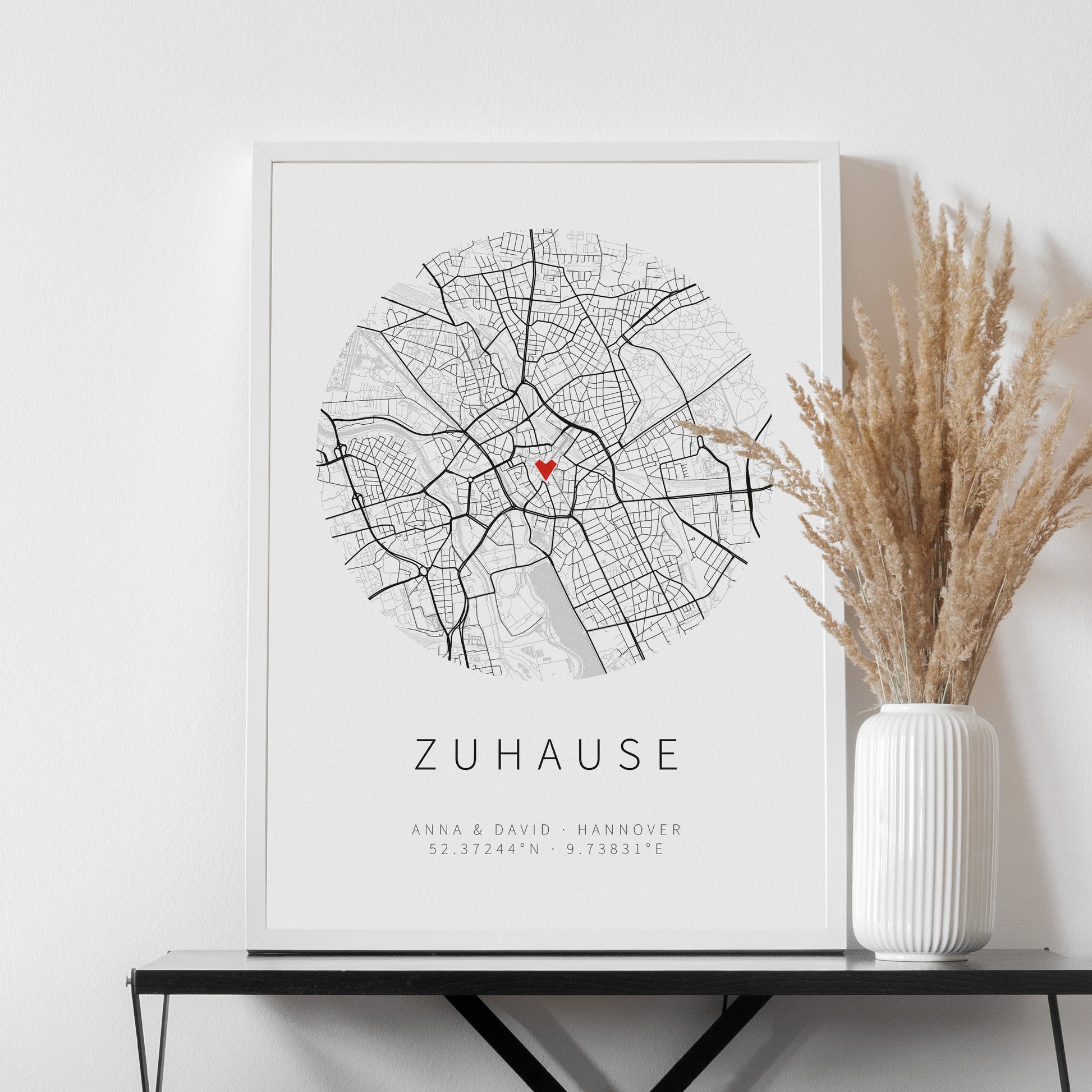 Individuell personalisiertes Stadtplan-Poster mit Wunschort und Beschriftung im minimalistischen runden Stil. Wie alle unsere Poster gedruckt auf hochwertigem Papier mit 250 g/m².